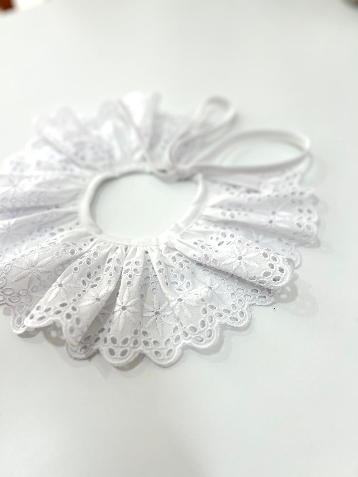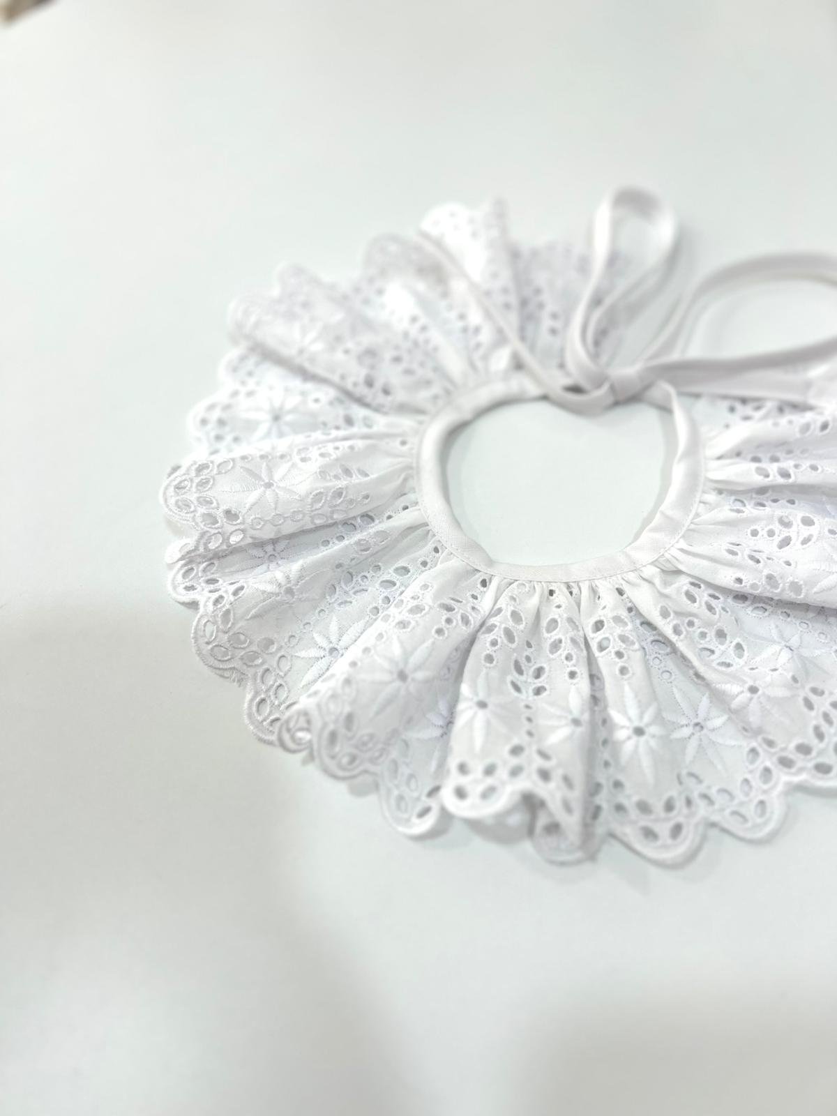 Cuello de quita y pon, hecho a mano con puntilla perforada, ideal para todo tipo de prendas.