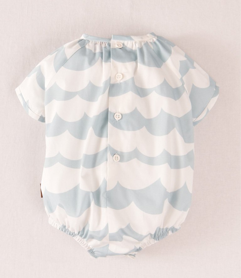 Pelele de la marca COCOTE, estampado en tela de ondas en color celeste.