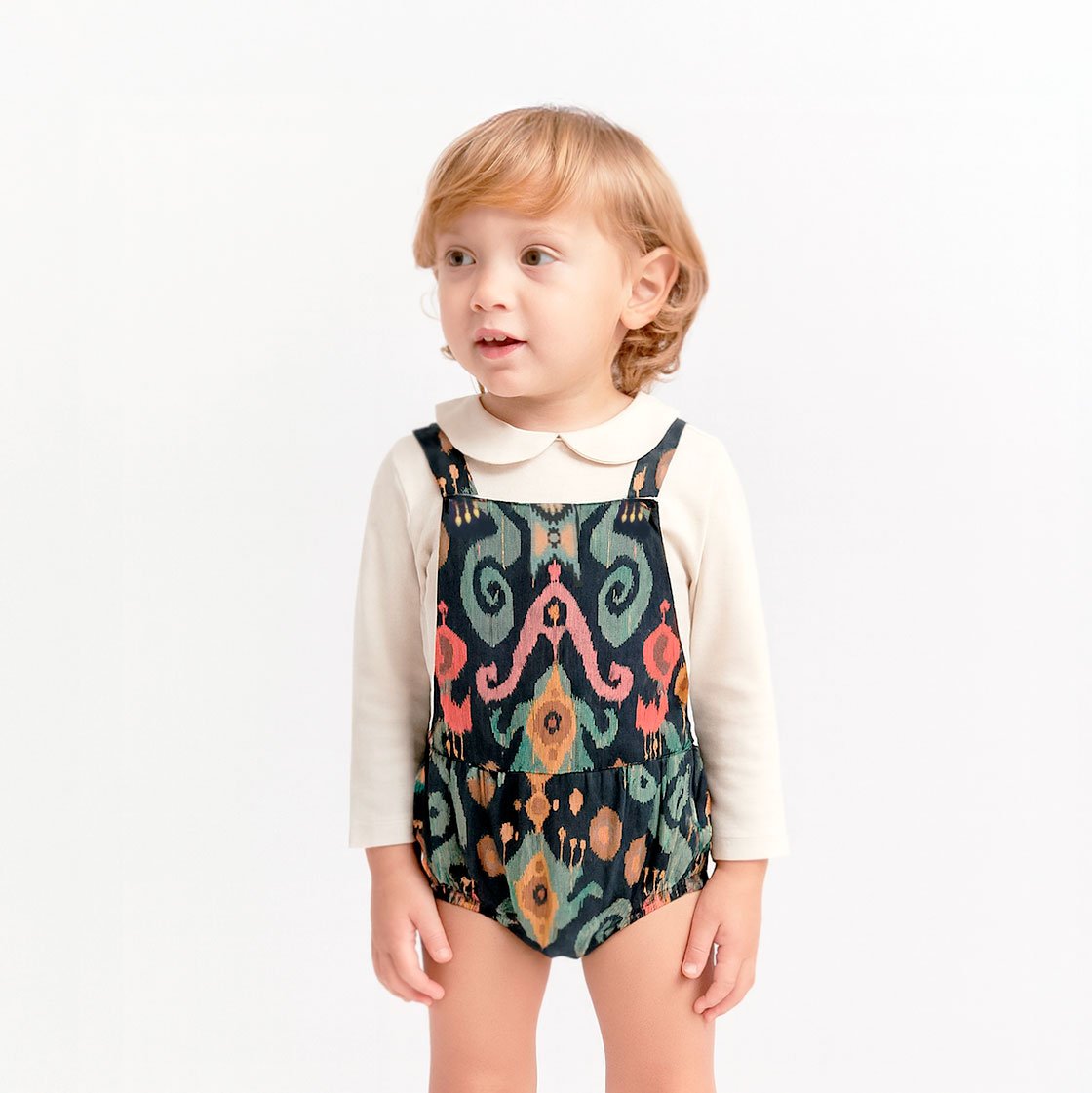 Peto rana bebé estampado Ikat multicolor